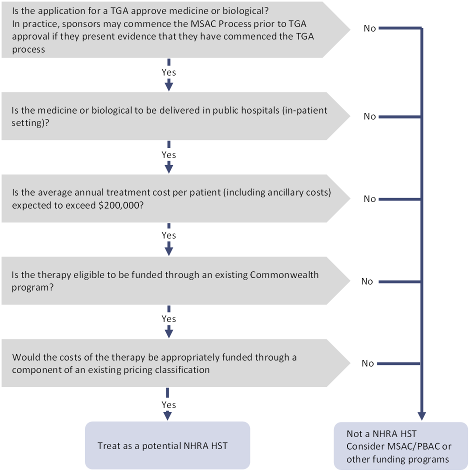 Figure 1. Decision tree for determining if a health technology should be treated as a potential NHRA high cost, HST